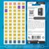 Cada embalagem contém 60 etiquetas medindo 24x18 mm, com 12 cores distintas, sendo 5 etiquetas de cada cor.